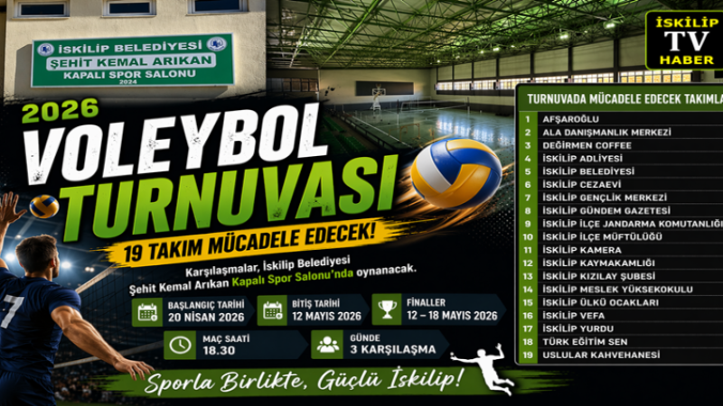 İskilip Kaymakamlığı ve İskilip Belediyesi tarafından organize edilen 2026 Voleybol Turnuvası başlıyor.